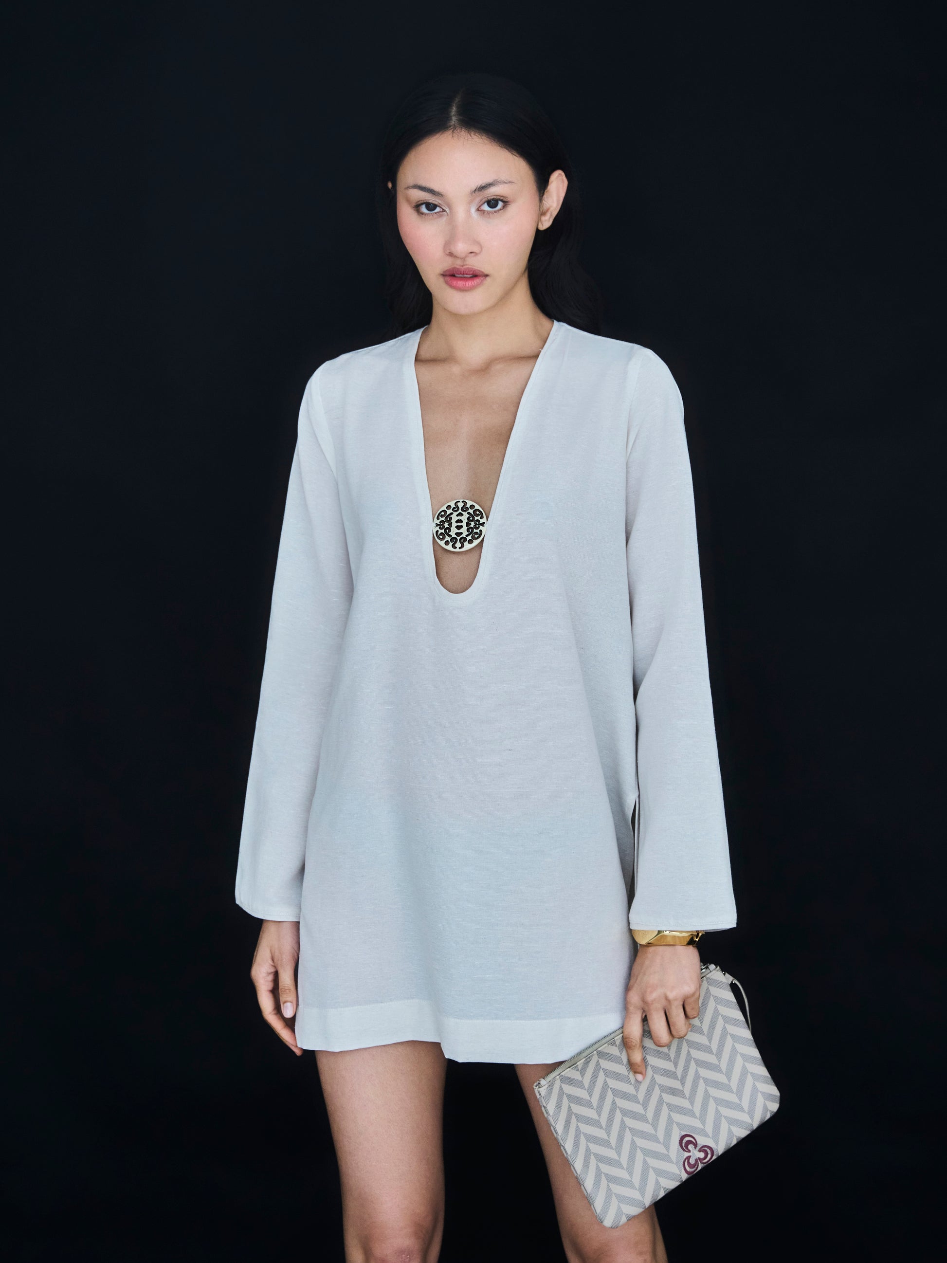 The dress is perfect for sunny beach days. Featuring a subtle front-center accessory detail, it offers an effortlessly chic look while keeping you cool and comfortable all day long.