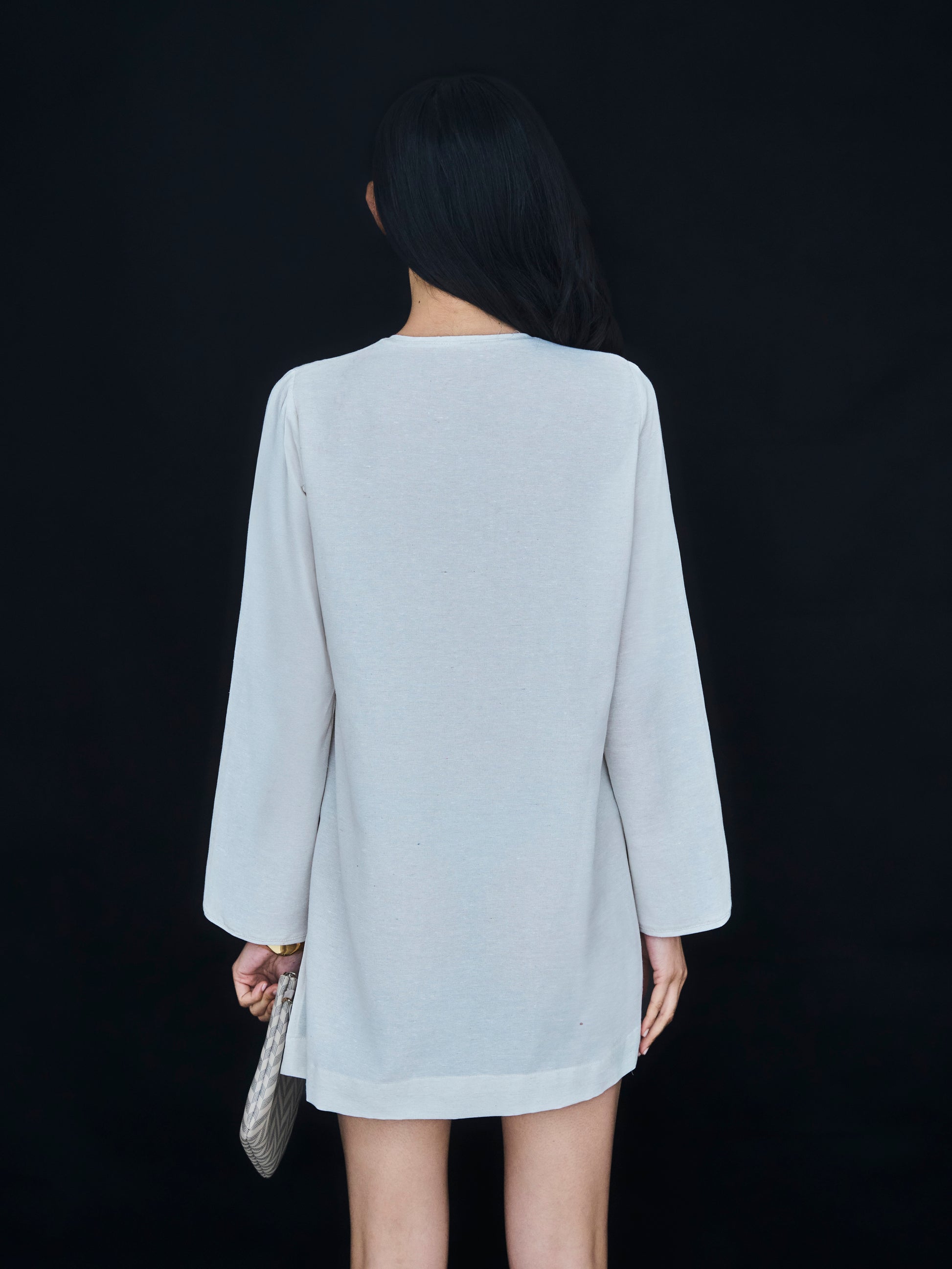 Accessorized cotton-linen mini dress