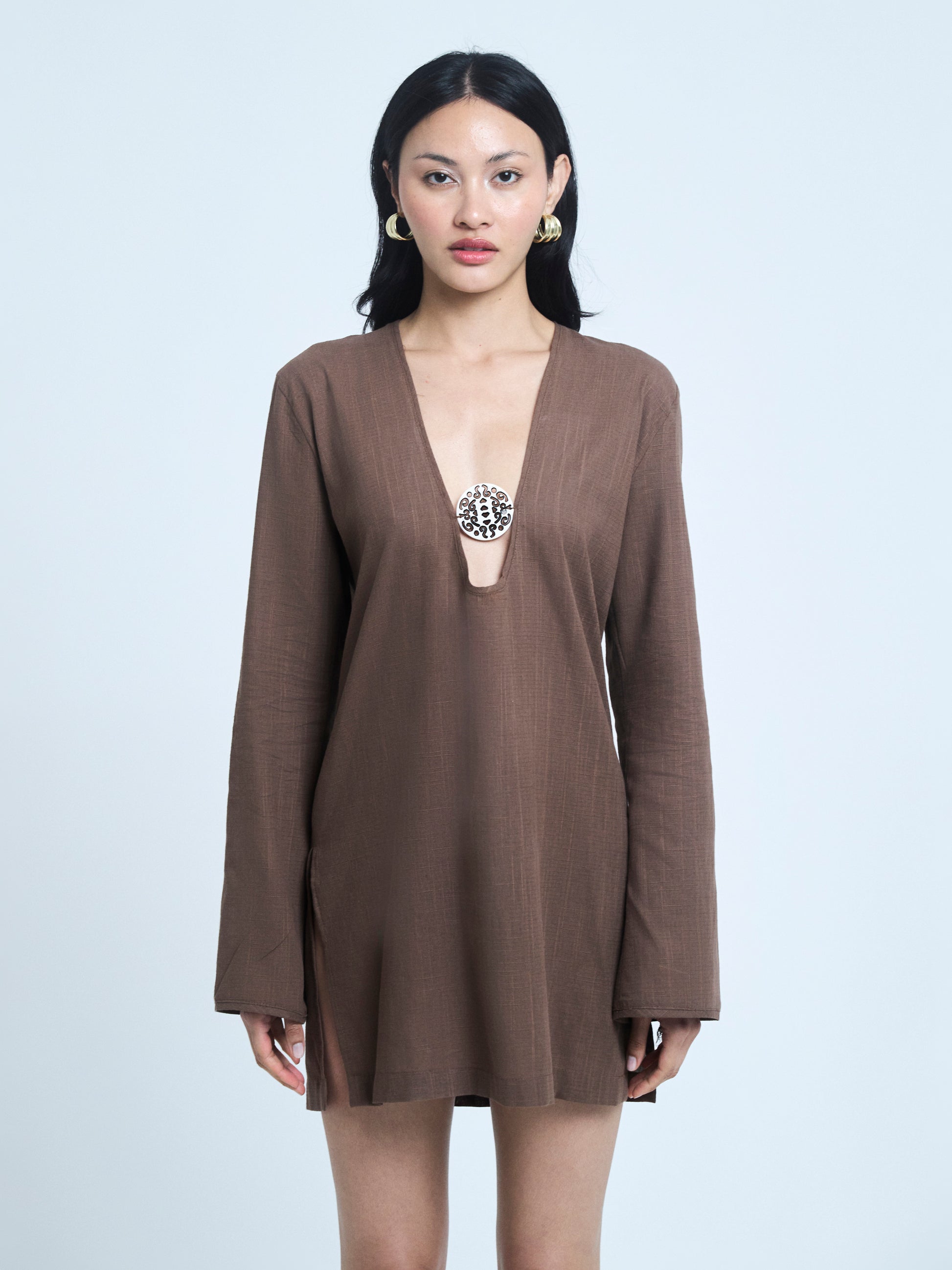 The dress is perfect for sunny beach days. Featuring a subtle front-center accessory detail, it offers an effortlessly chic look while keeping you cool and comfortable all day long.