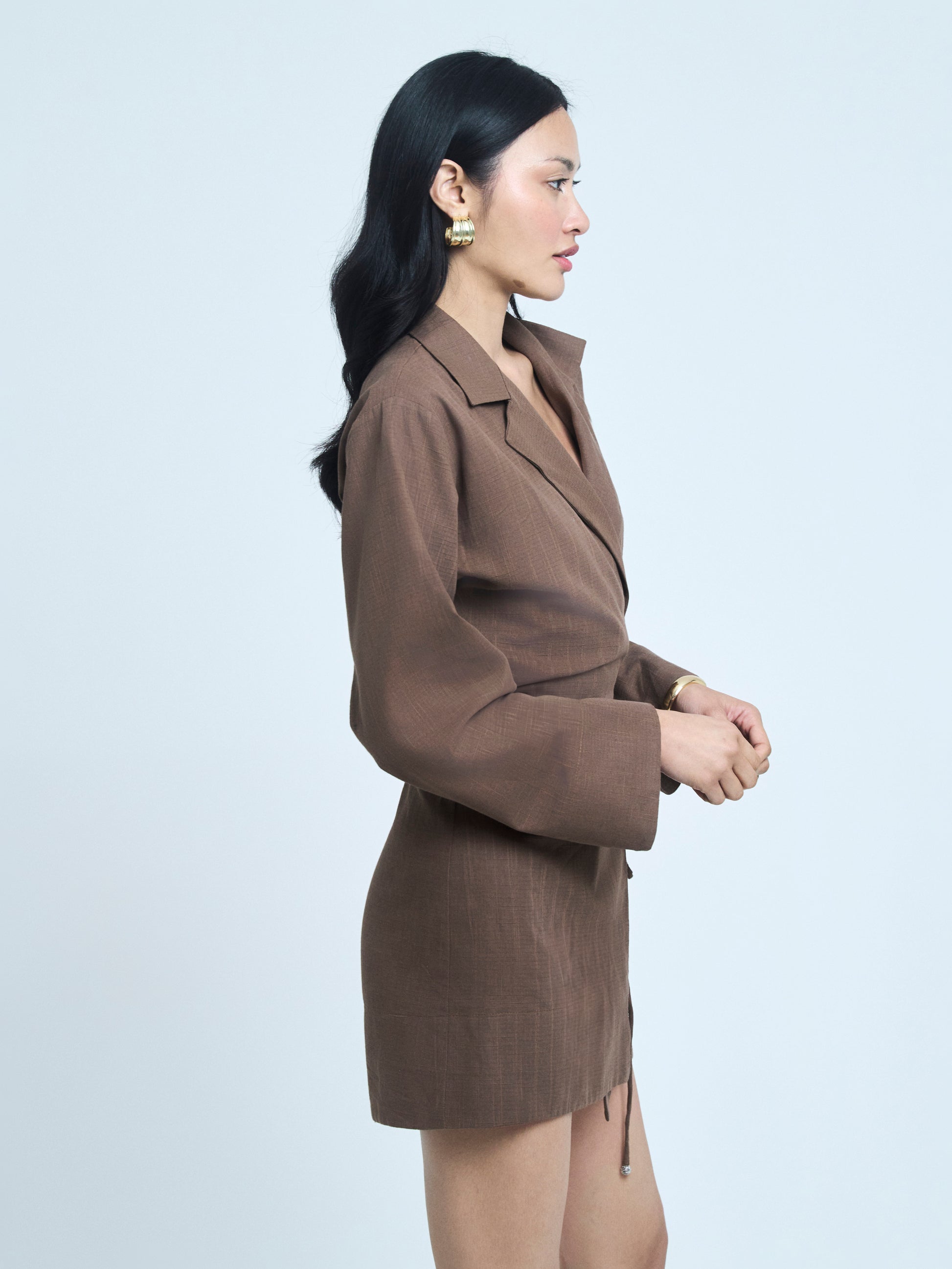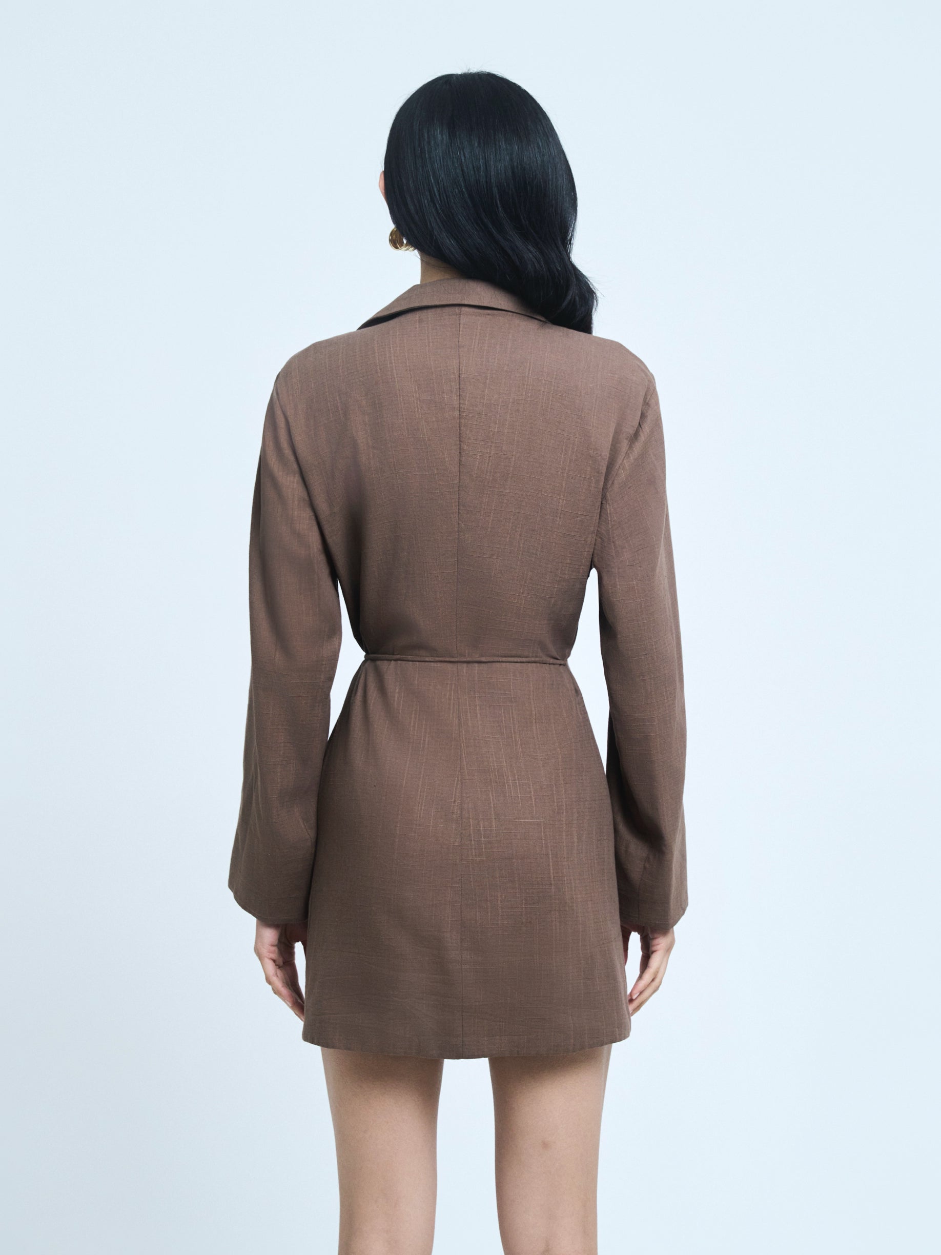 Linen blazer-style dress with a front tie.
