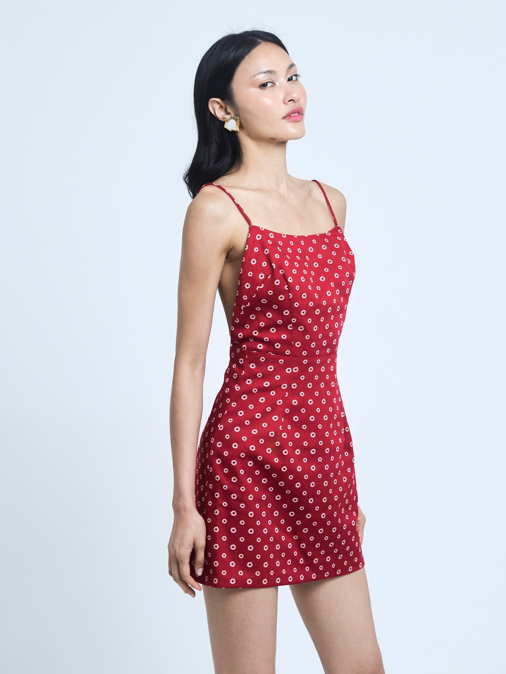 This short, floral-print dress features delicate straps, a lined interior, and a back-center zipper for a perfect fit. Feminine and fresh, ideal for warm days and casual occasions.