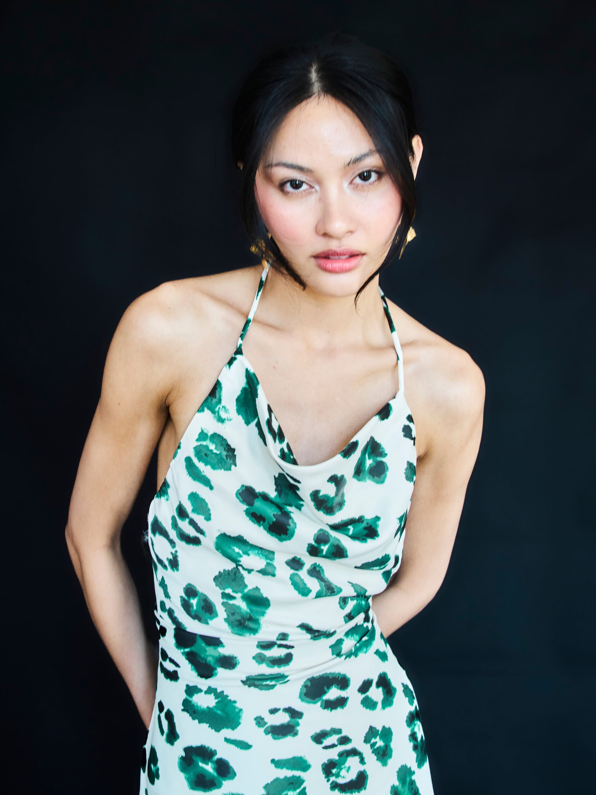 Soft, satin-touch fabric with fluid drape and slight stretch.
